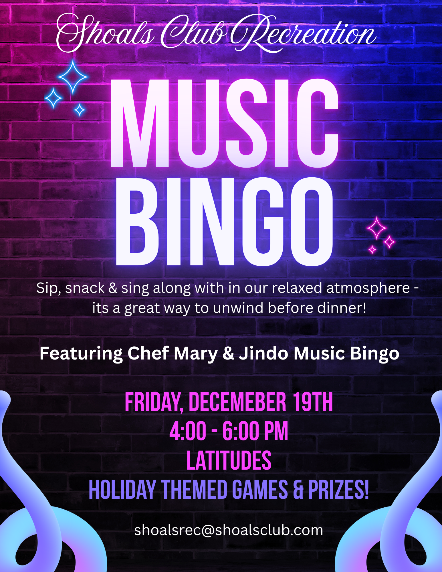 The Shoals Club’s events are open to members and their guests and guest pass holders only.
