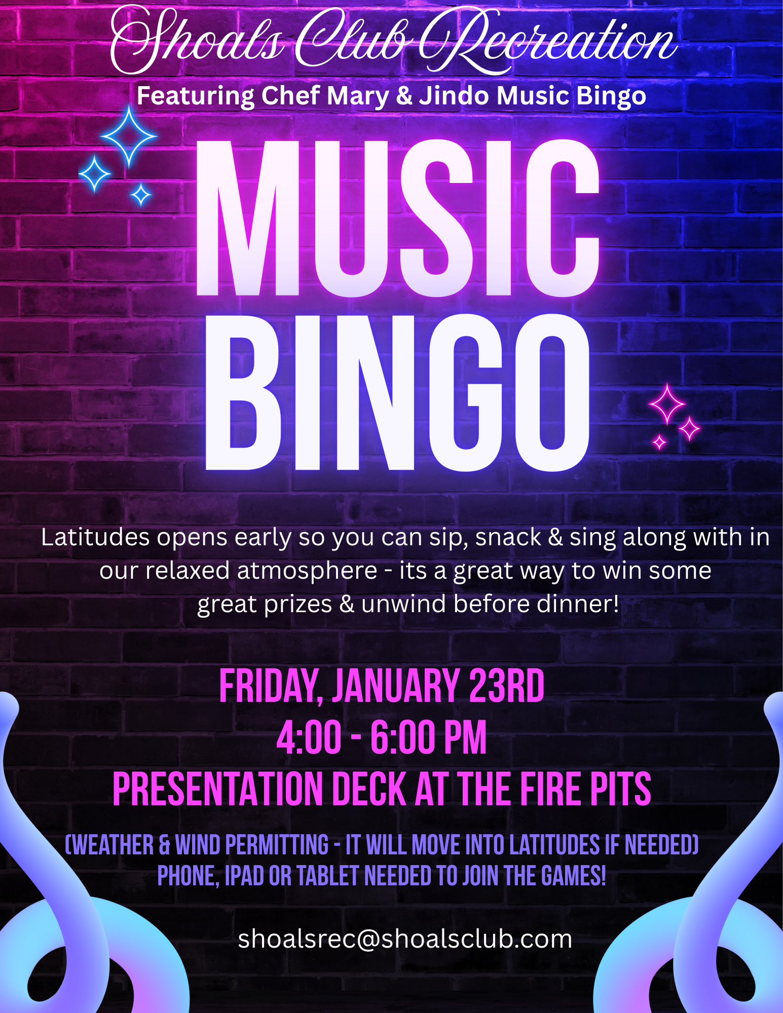 | 23rd *New Date | Fri | Recreation | Music Bingo |