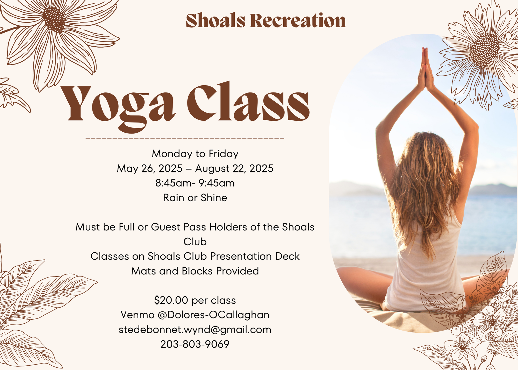 Yoga is offered seasonally and meets on the presentation deck.