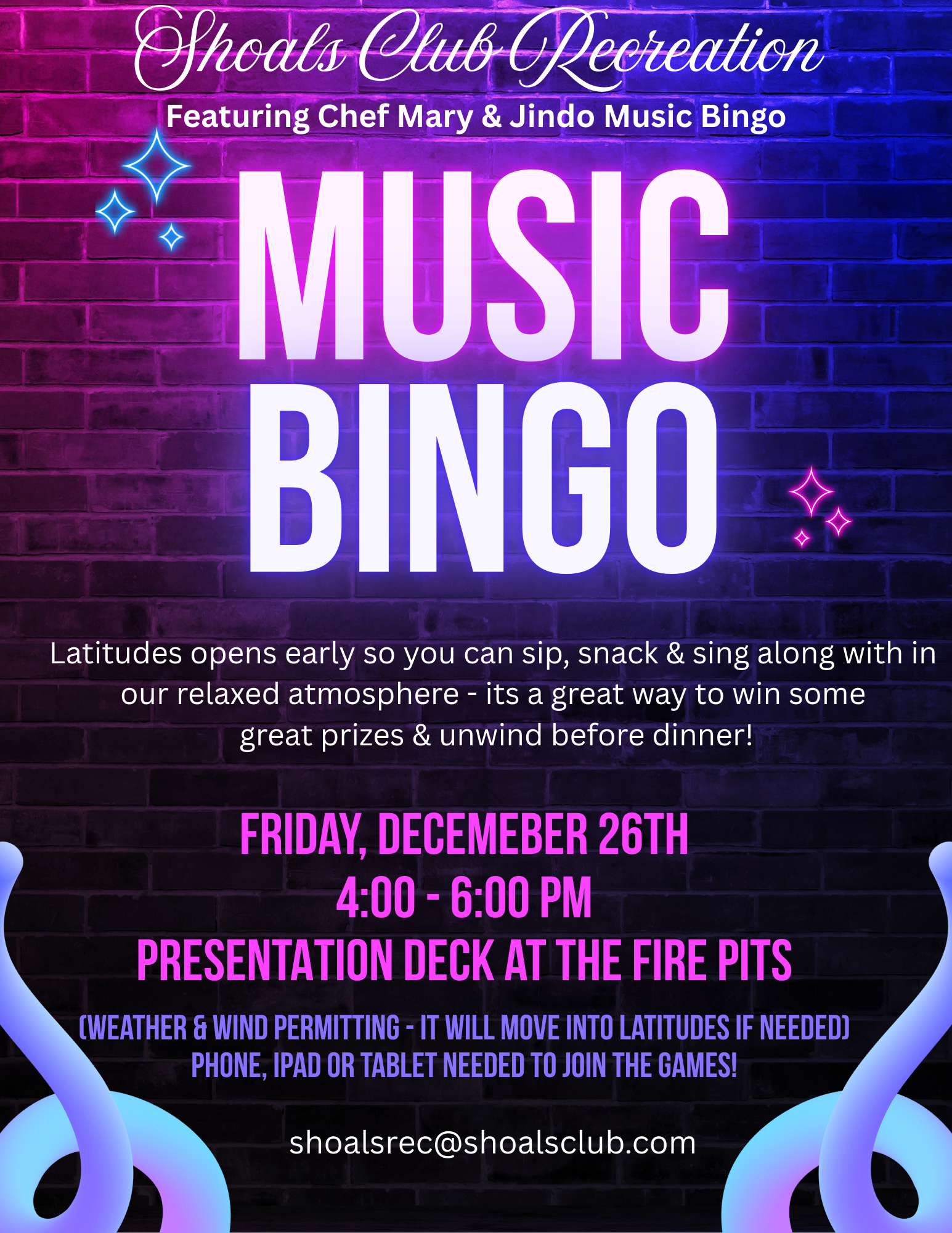 | 26th | Fri | Latitudes | Music Bingo 4:00pm-6:00pm |