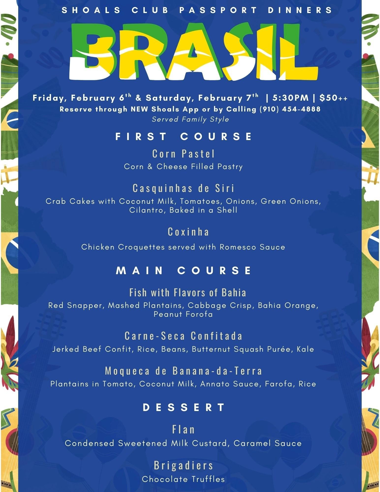| 12th-13th | Fri & Sat | Aqua | International Passport Dinner-Brazil |